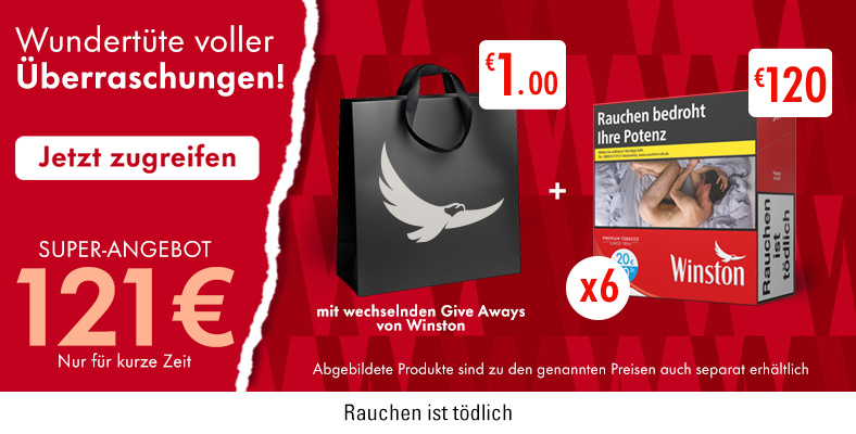 Bei uns findest Du alles, was das Raucherherz begehrt. Wir bieten Dir eine riesige Auswahl an Tabakwaren aller Art von Zigaretten über Tabak, Zigarren, Zigarillos, Tabakerhitzern bis hin zu E-Zigaretten uvm. Das alles und noch mehr kannst Du bei uns rund um die Uhr direkt günstig online kaufen. Dazu haben wir laufend neue Angebote und Sonderaktionen – wie z. B. unseren versandkostenfreien Montag. Es lohnt sich also regelmäßig vorbeizuschauen.