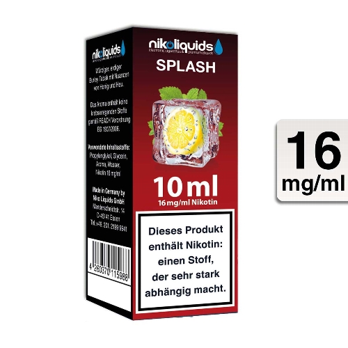 Wenn Du ein Liquid suchst, das Dich durch seinen klaren, lebhaften Charakter überzeugt und Deinen Alltag mit einem spritzigen Aroma begleitet, ist Nikoliquids Splash 16mg genau die richtige Wahl. Sichere Dir diese erfrischende Komposition und genieße jedes Dampferlebnis aufs Neue.