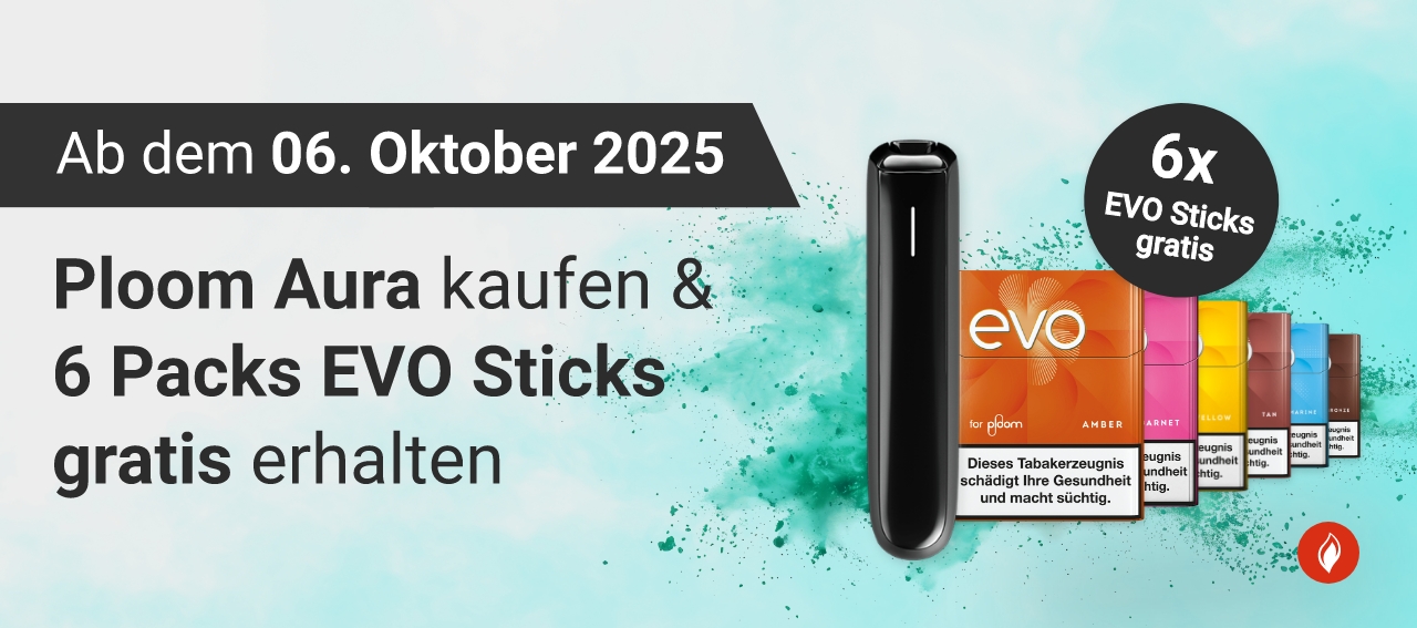 Ab dem 06. Oktober 2025 gibt es einen neuen Registrierungsprozess für die Ploom Aura mit 6 Gratis-Packungen EVO Sticks.