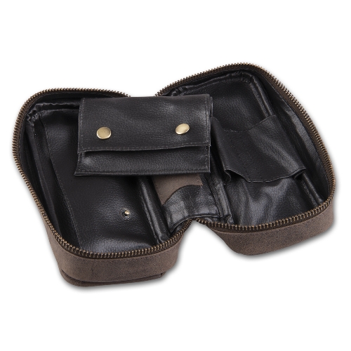 Das Etui eignet sich für bis zu 2 Pfeifen inklusive einem kleinen Tabakbeutel,
